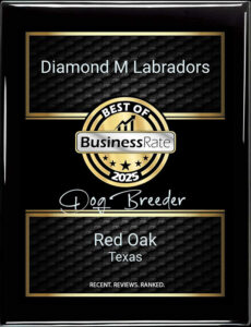 At Diamond M Labradors, we’re dedicated to ethical, transparent AKC English Labrador breeding, giving every future owner peace of mind through clear health records and responsible care. Our puppies receive regular vet checks, up-to-date vaccinations, and are raised in a clean, nurturing home environment that supports both physical and emotional development. We take pride in producing happy, healthy Labs and seek families who share our deep love and lifelong commitment to these amazing companions. If you're looking for a reputable Labrador breeder you can trust, we're here to help—contact us today to learn more or start your journey toward Lab ownership.